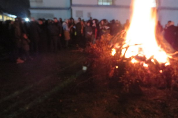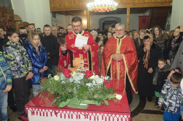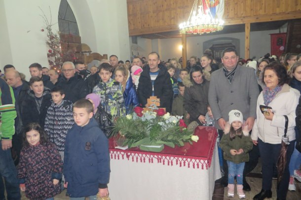 Nakon toga, u punoj crkvi Svete Trojice uglavnom mlađeg svijeta održano je večernje bogosluženje u okviru koga su sveštenici Predrag Masal i Zoran Jerinić osvetili su tri badnjaka koje su iz crkve po tradiciji ponijeli načelnik opštine Milorad Jagodić, predsjednik Crkvenog odbora Duško Ikonić i u ime „ostalih“ vjernika Goran Šarenac iz Seljana i, na unaprijed pripremljenu vatru u porti crkve, naložili u prisustvu većeg broja vjernika koje je u ne baš hladnoj zimskoj večeri grejala i toplina badnjaka kao što su tek rođenog Isusa Hrista grejali u hladnoj vitlejemskoj pećini od vatre na koju su pastiri naložili hrastovo drvo.